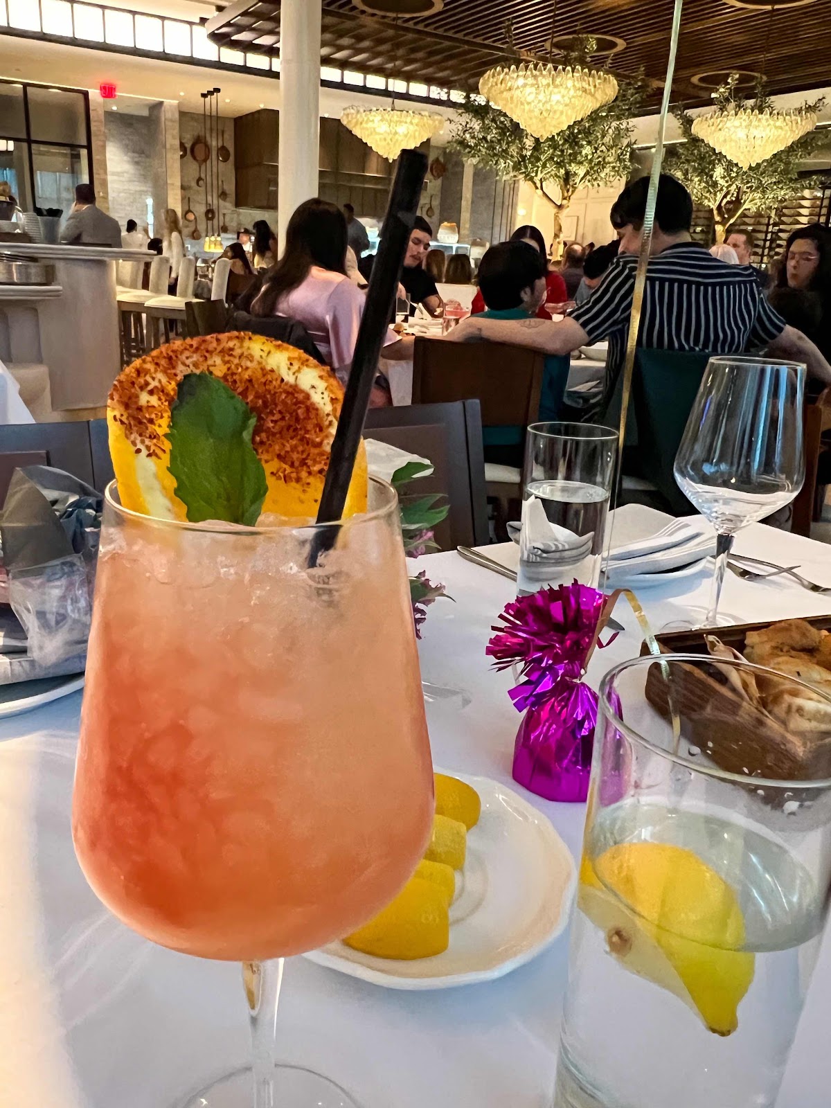 The color schemes throughout the restaurant provide a relaxing comfortable environment for either a date night or a single person just out on the town. They have a seafood station (more for prepping for the kitchen) at the far back left hand corner, then in the middle of the restaurant are these beautifully set up trees with lighting and intimate booths surrounding the tree area. They have a nicely rounded bar to provide ample views of every corner of the restaurant, whether you're people watching or just enjoying the space and crowd. The back side of the bar faces this nice little nook area for what feels like a more private dining experience and of course! The far right side of the restaurant has these huge floor to almost ceiling windows, that lead to a luscious and refreshingly green patio seating. I haven't personally sat in the patio yet but it is on my to do list!